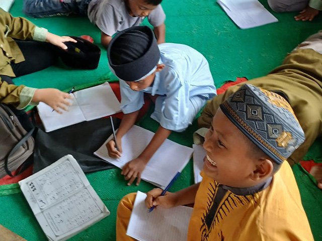 Selain mengaji, juga ada pembelajaran umum untuk santri sekolah.